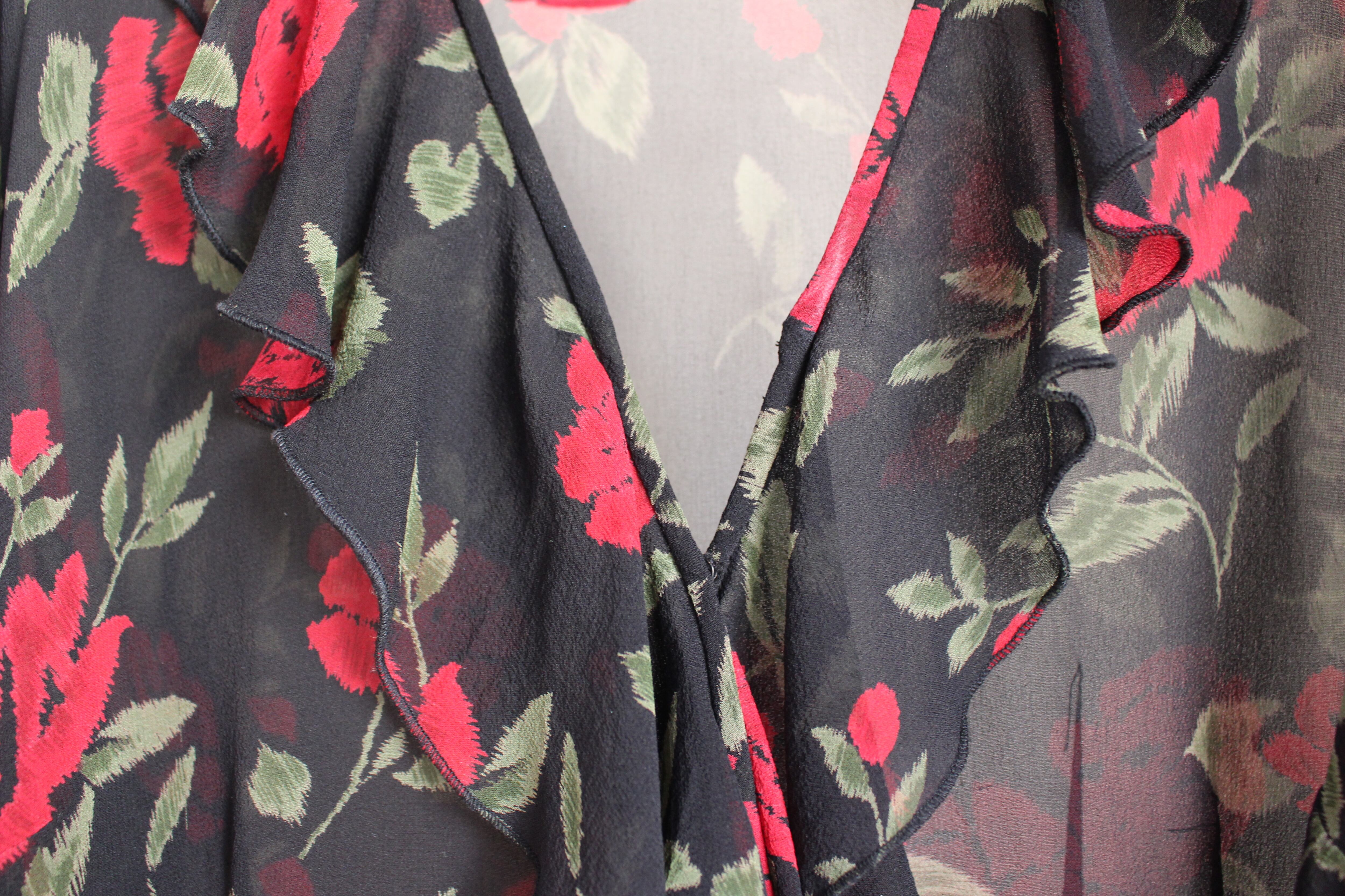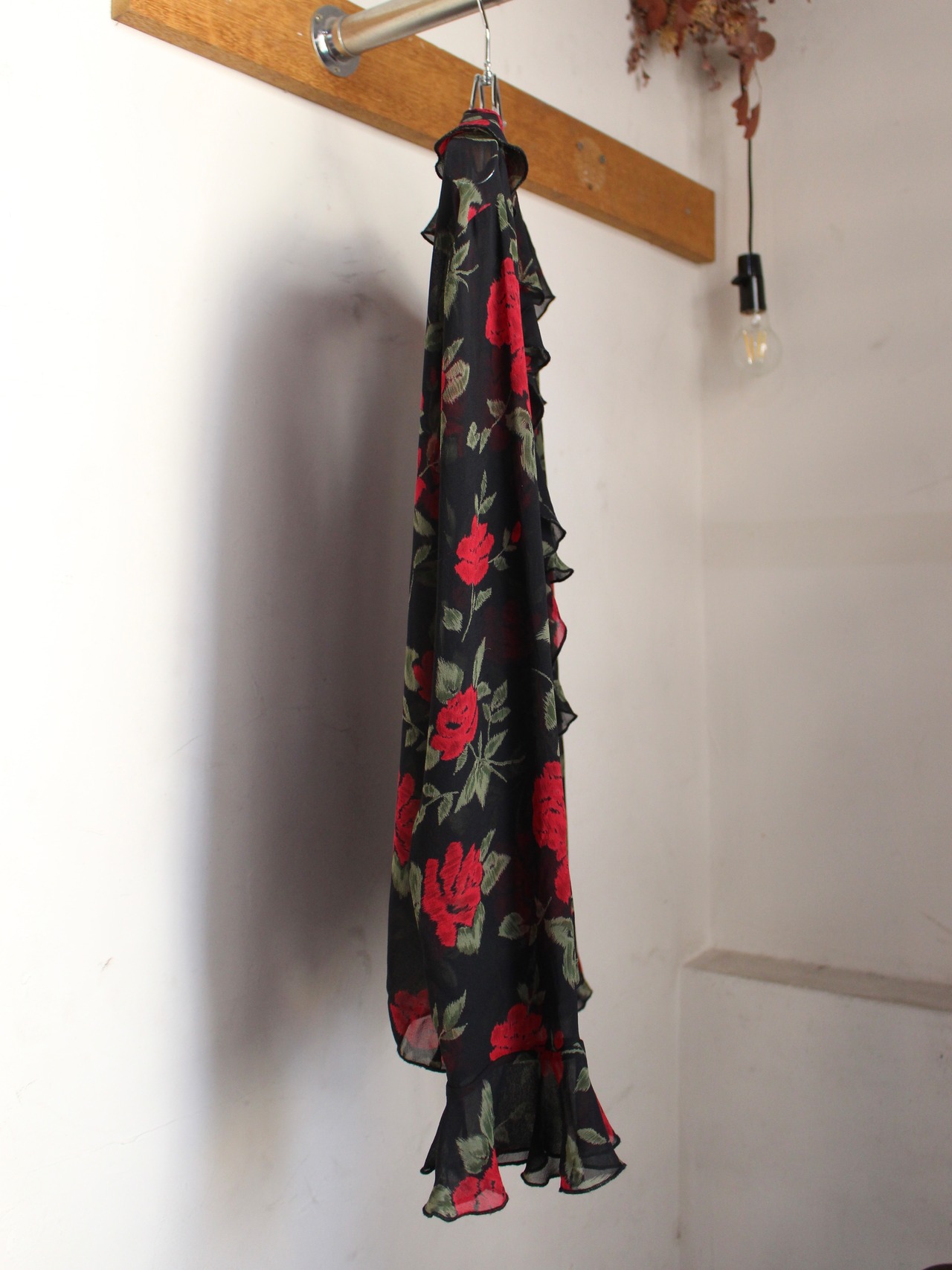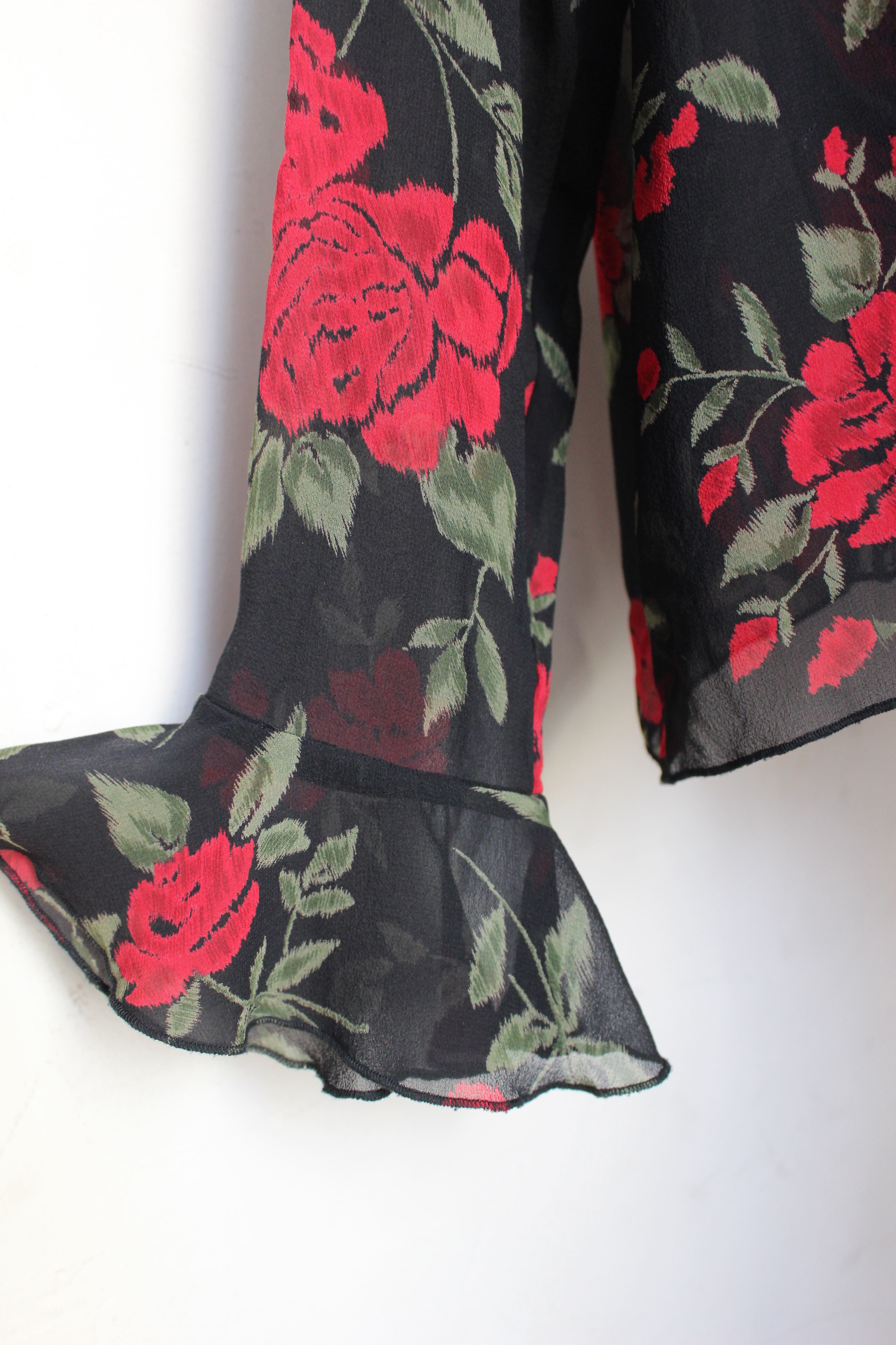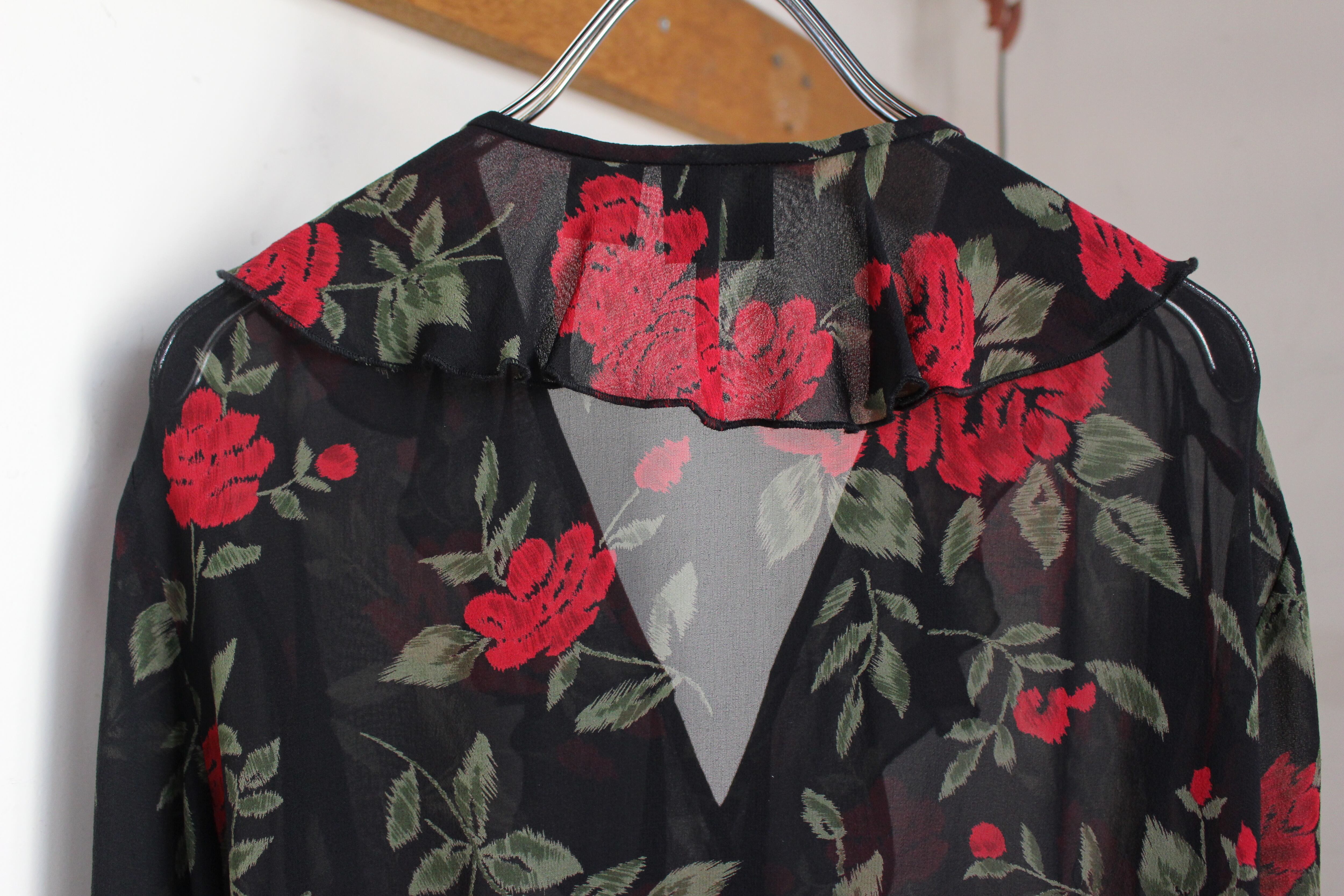 Rose print silk cache-coeur blouse / 古着 ヴィンテージ シルクブラウス 長袖 バラ柄