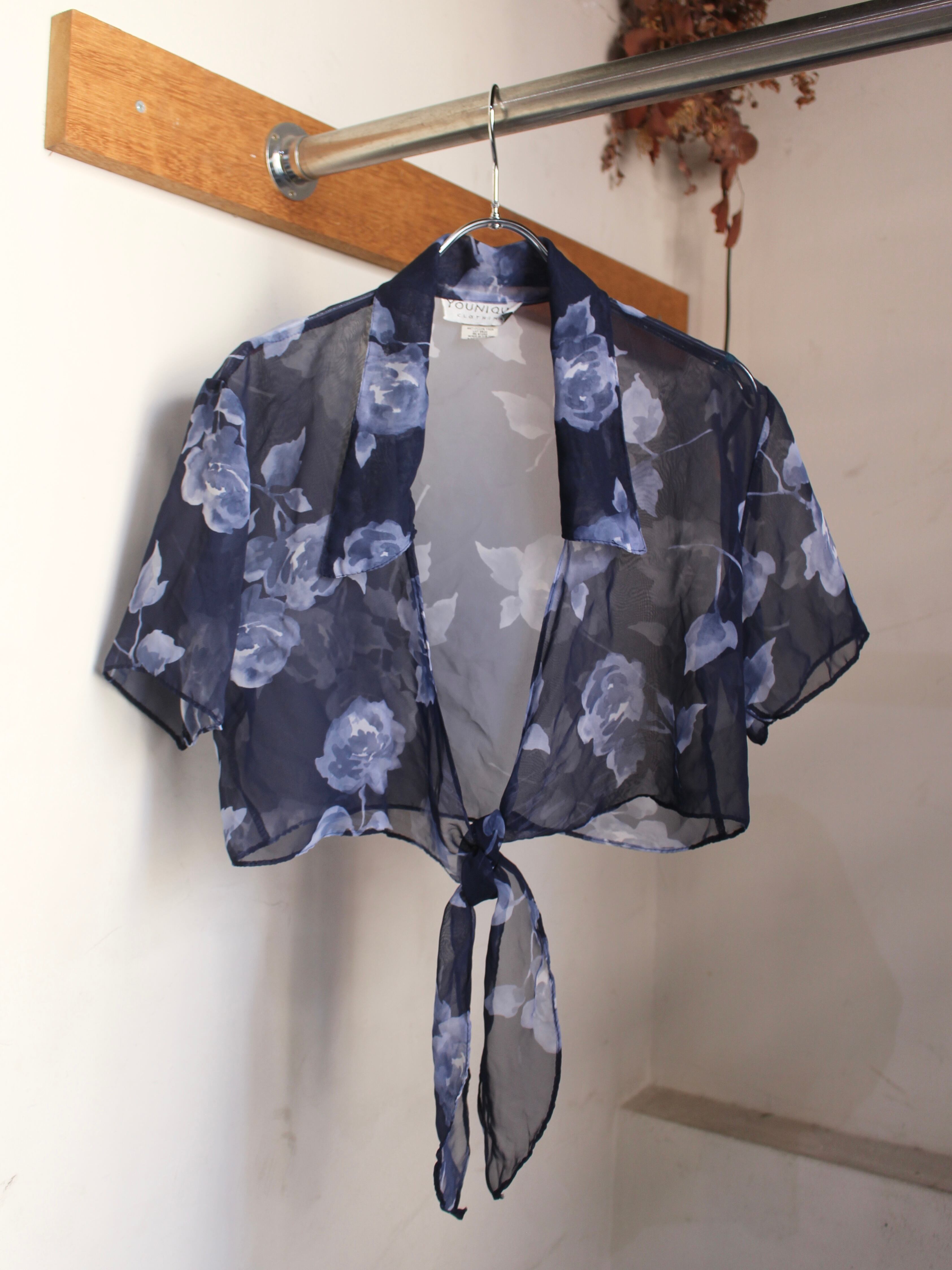 Navy flower short length bolero made in U.S.A / 古着 ヴィンテージ ショート丈 ボレロ 花柄