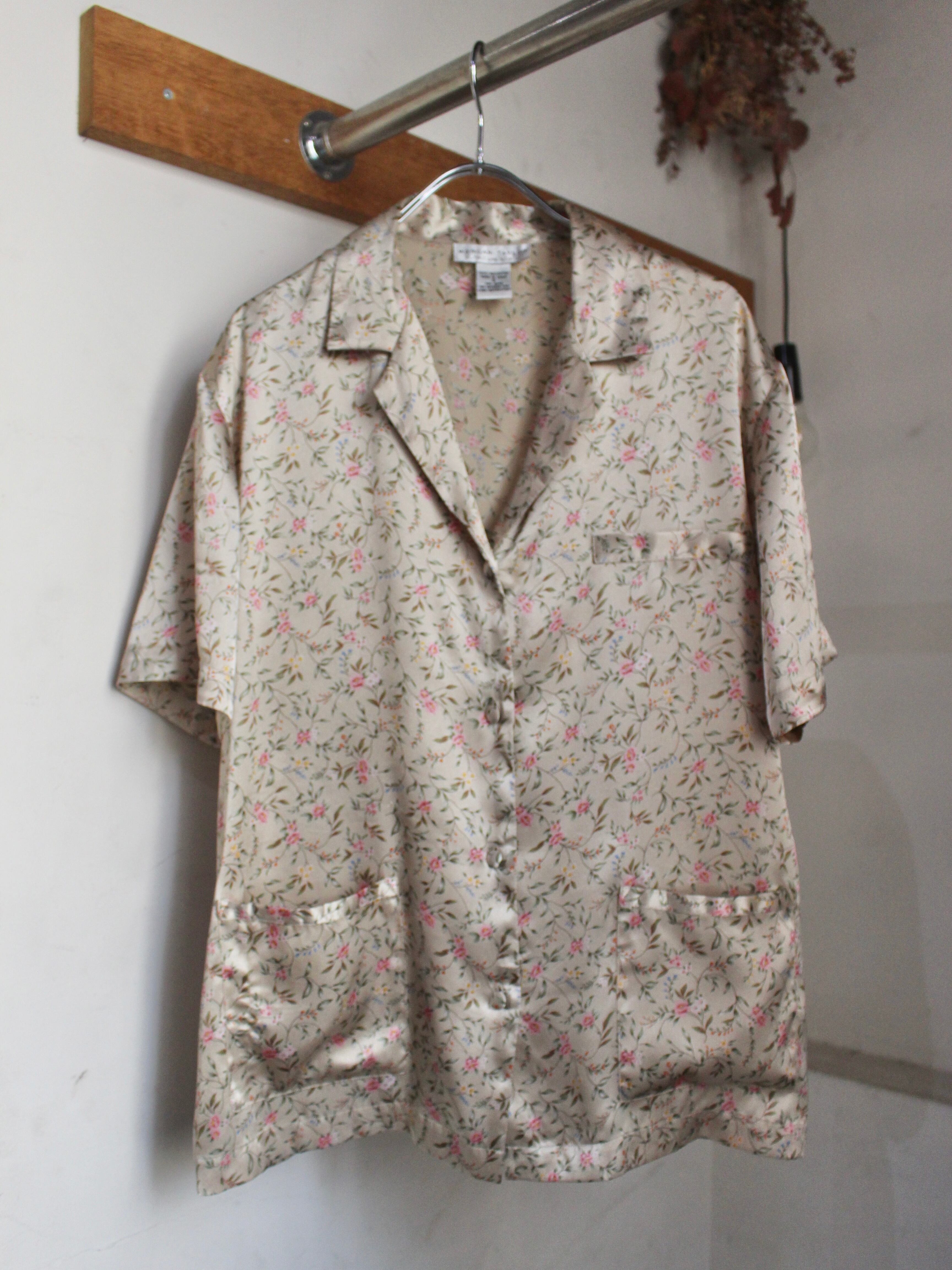 Flower print short sleeve pajama shirts / 古着 ヴィンテージ パジャマシャツ 花柄 シャンパンゴールド