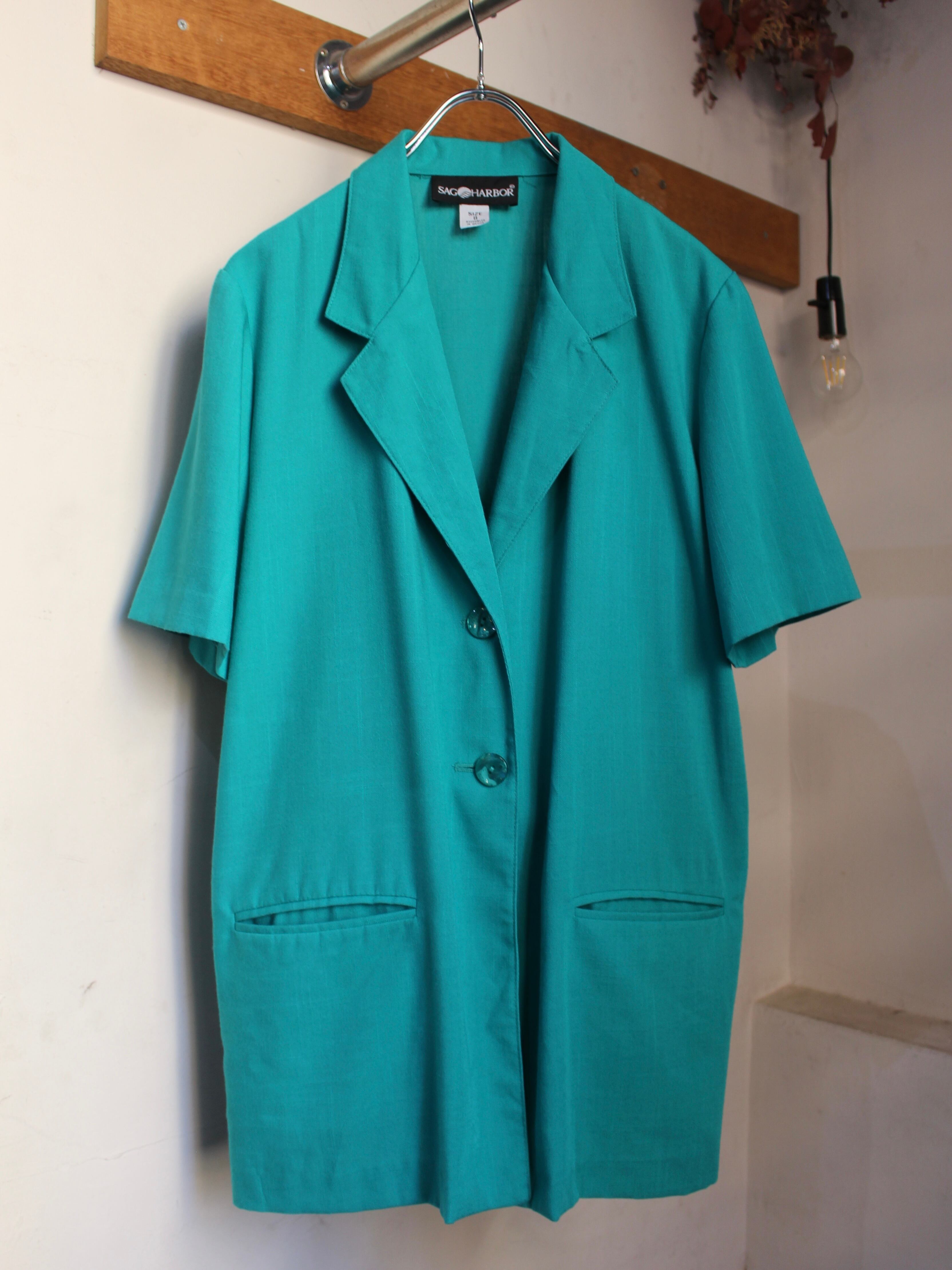"SAG HARBOR" green short sleeve easy jacket / 古着 ヴィンテージ イージージャケット 半袖 グリーン