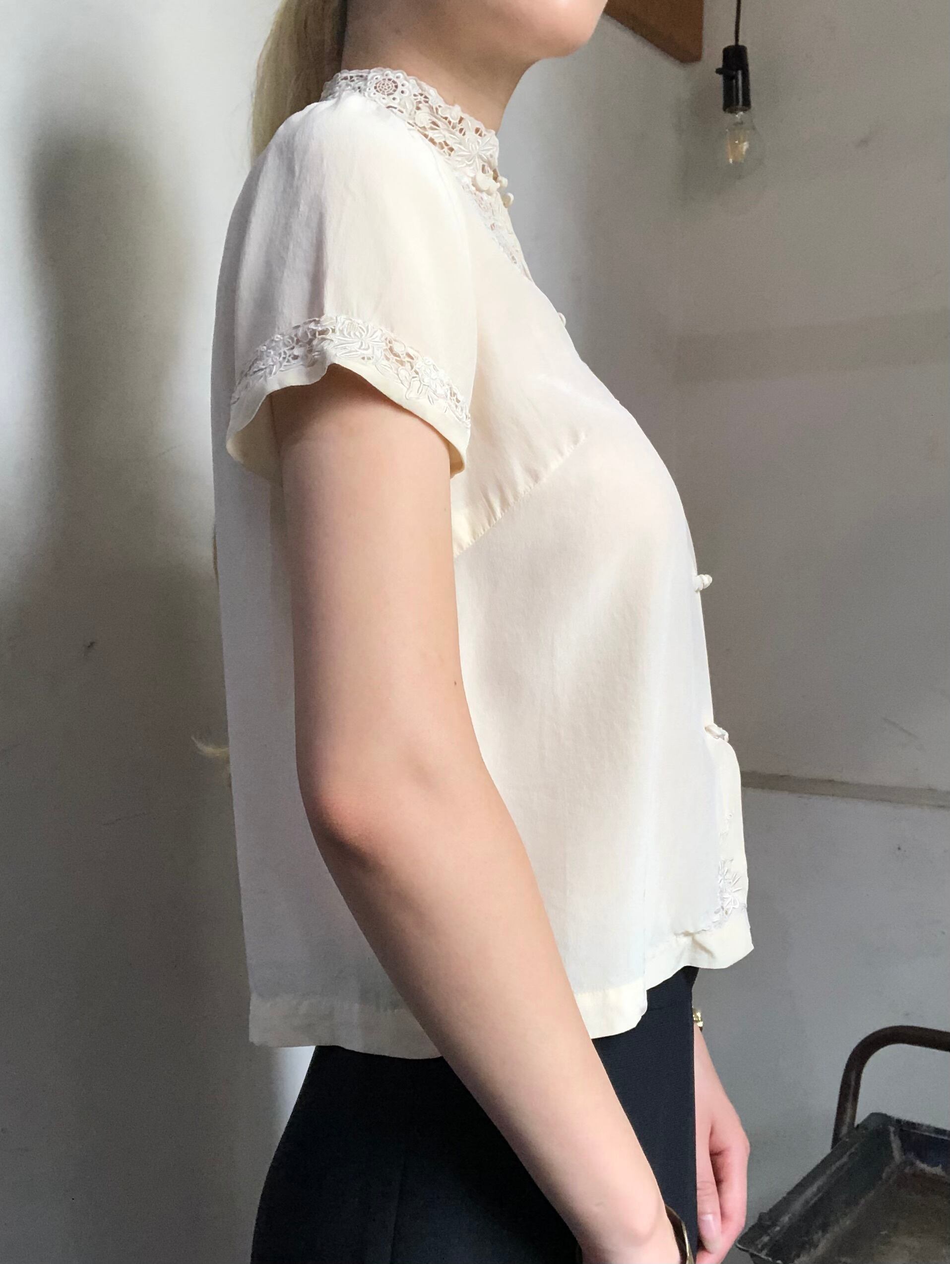 Vintage silk china blouse / 古着 ヴィンテージ チャイナトップス シルク製 白ブラウス レース