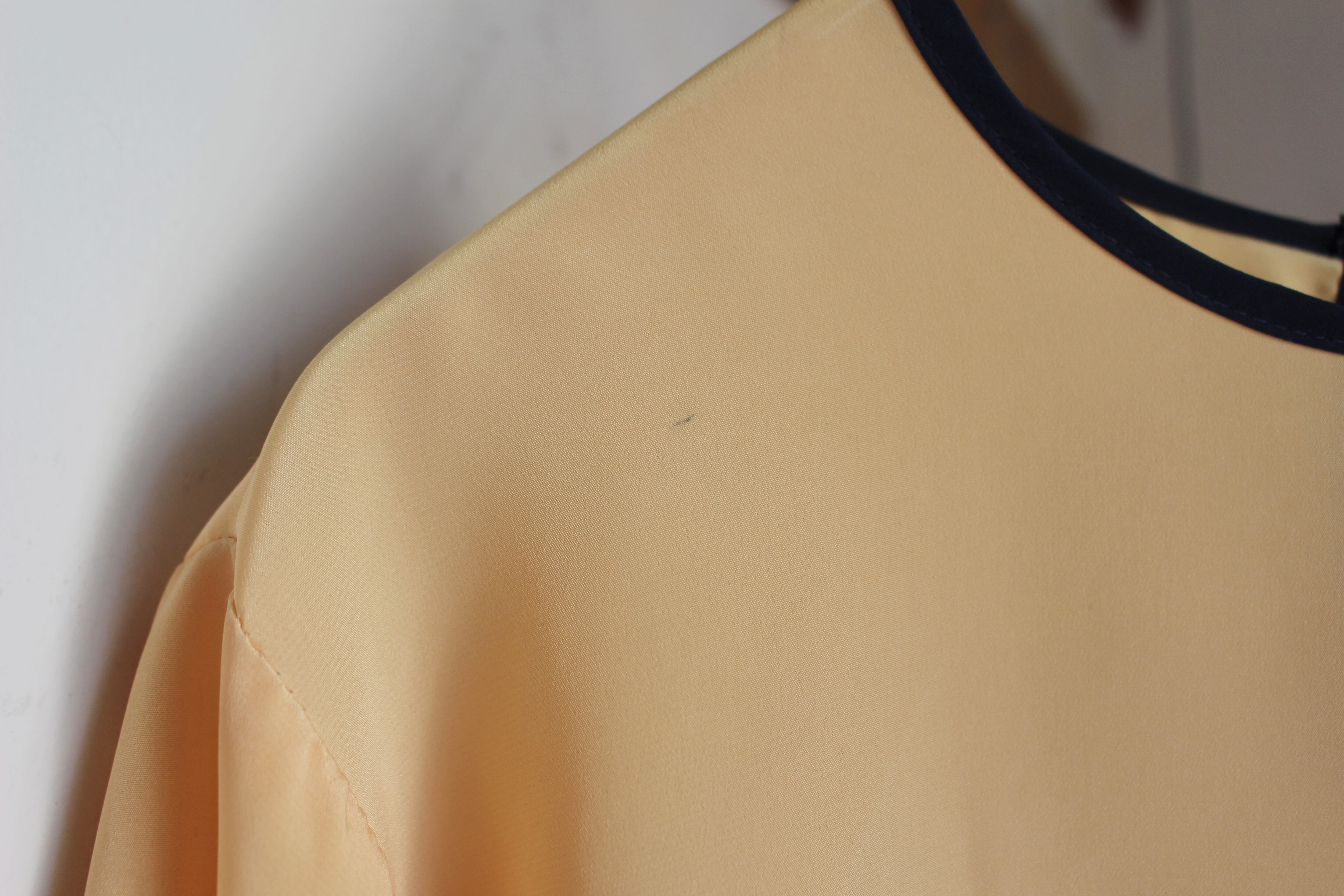 Navy piping yellow short sleeve silk tops / 古着 ヴィンテージ シルクトップス イエロー ネイビー
