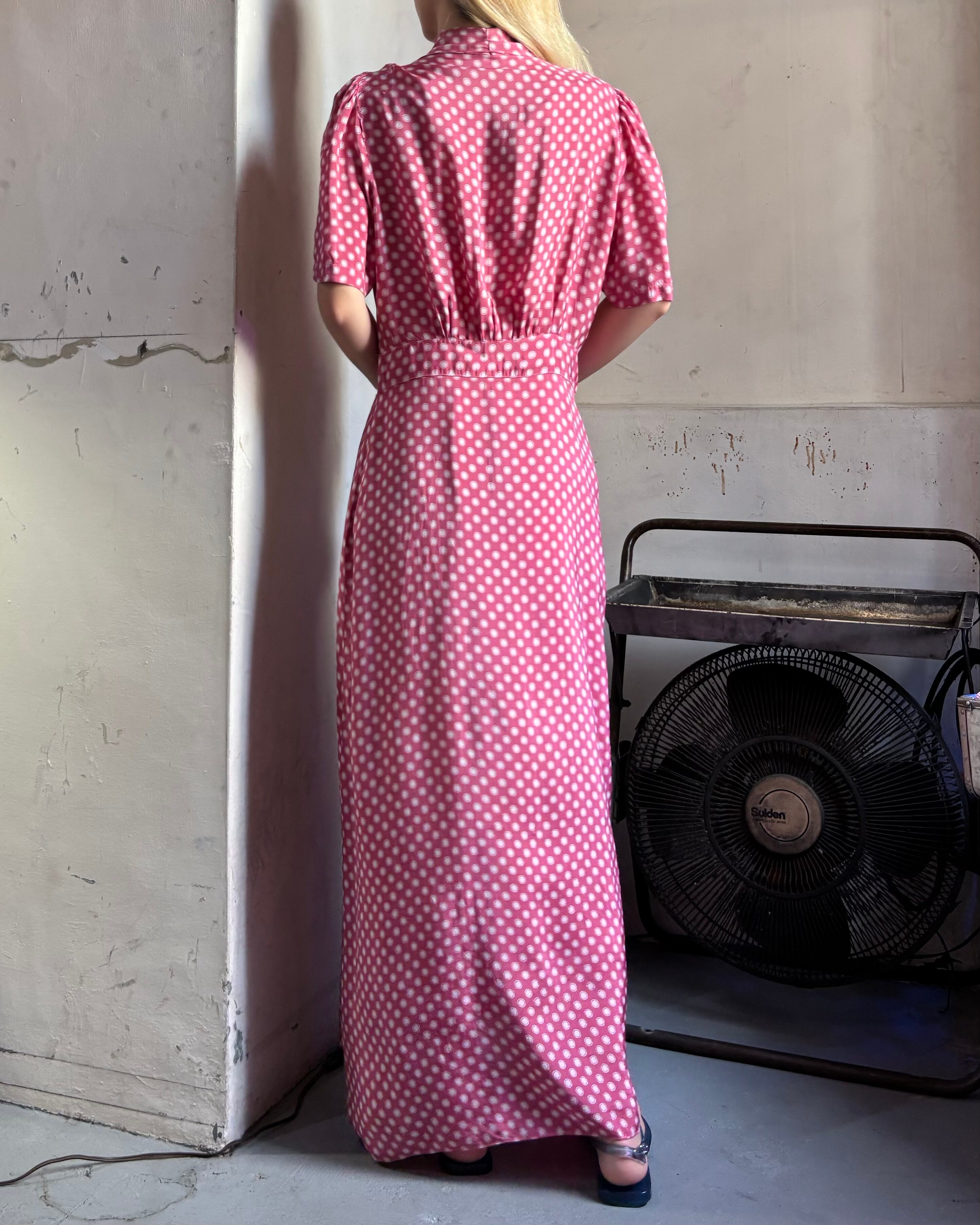 50's pink circle print gown dress / 古着 ヴィンテージ シルクドレス ガウン ピンク