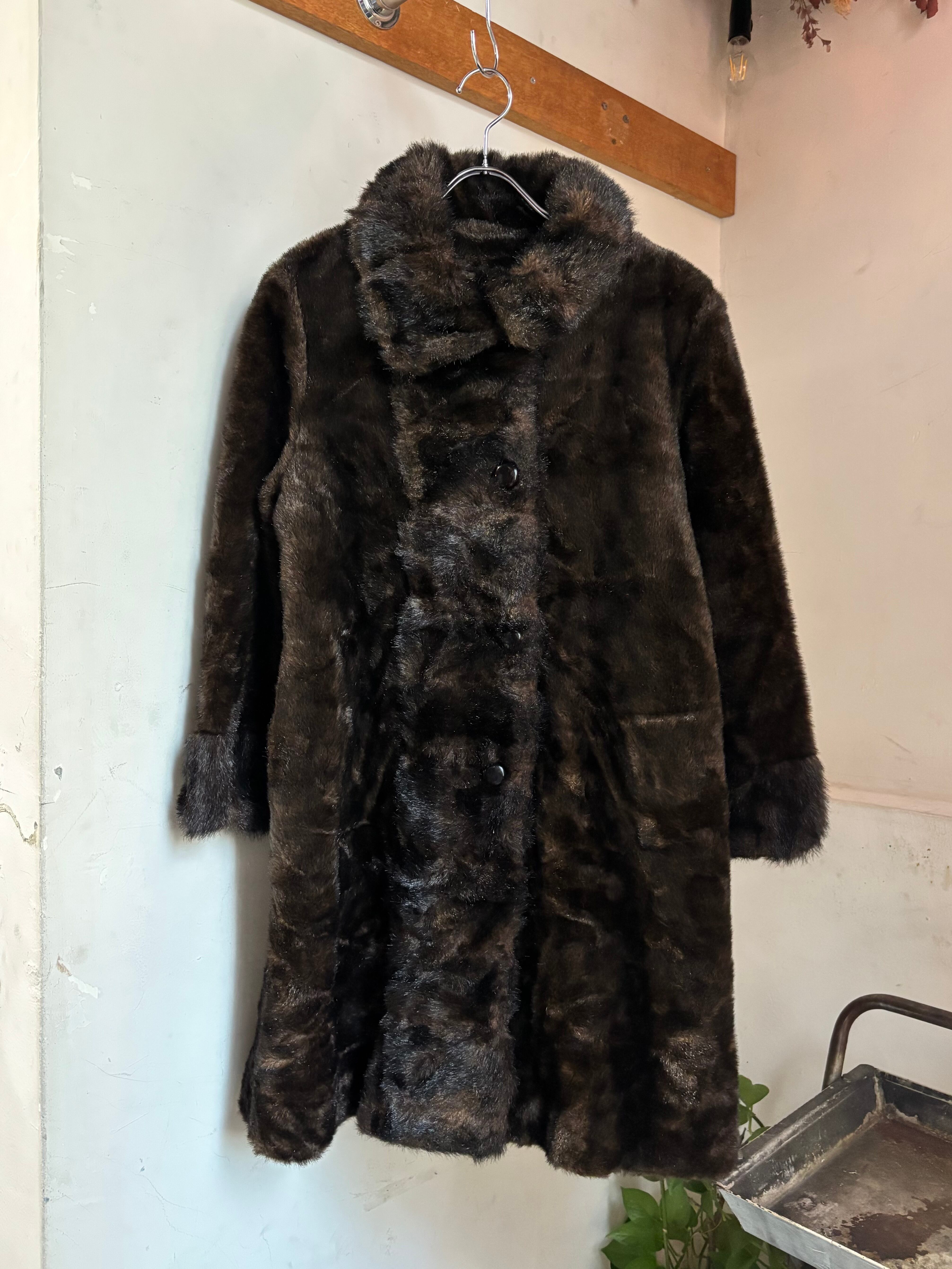 Brown faux fur coat made in USA / 古着 ヴィンテージ vintage フェイクファーコート 茶