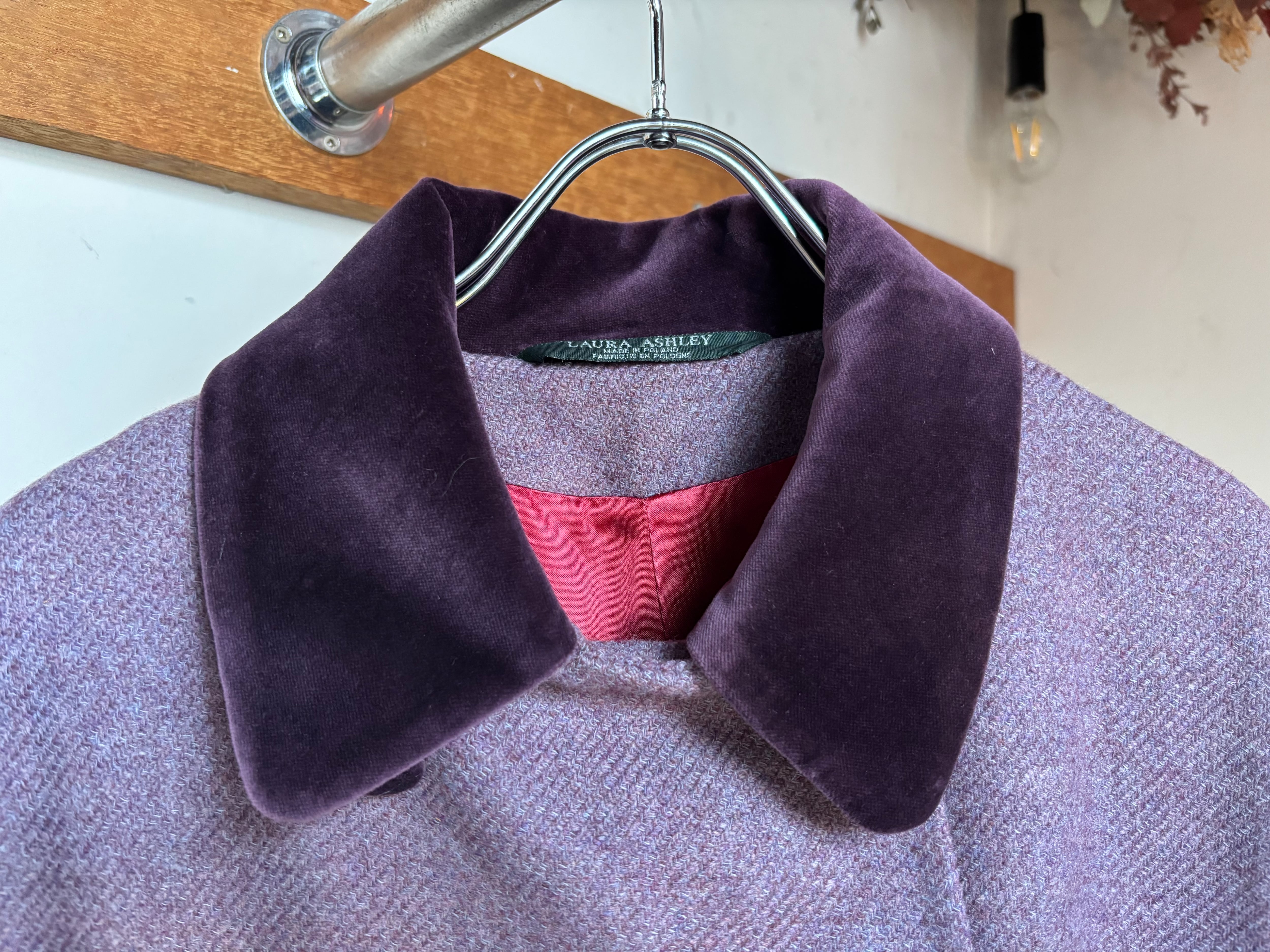”Laura Ashley” purple wool double-breasted coat made in Poland / 古着 ヴィンテージ ローラアシュレイ ダブルブレスト コート 紫 ベロア ポーランド製