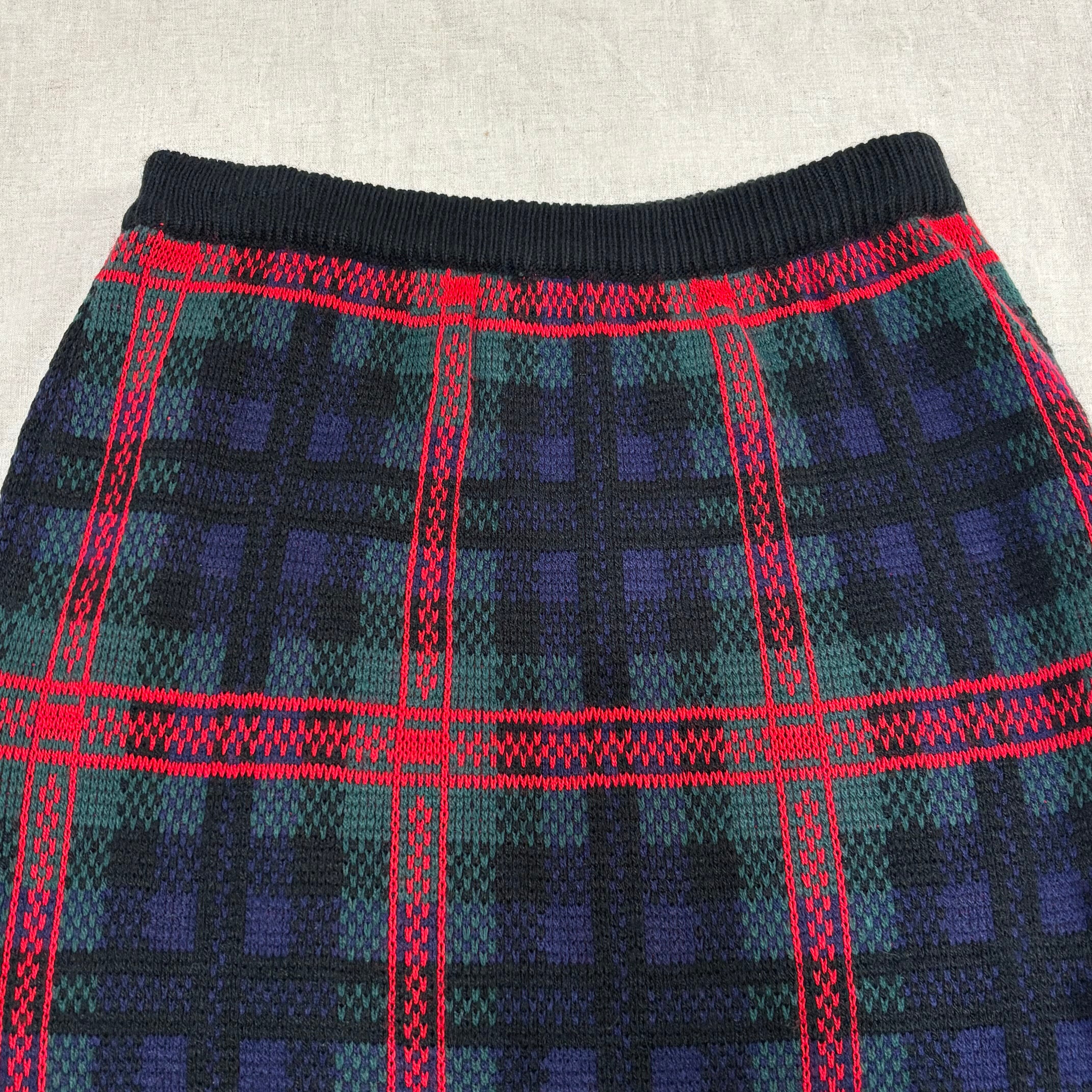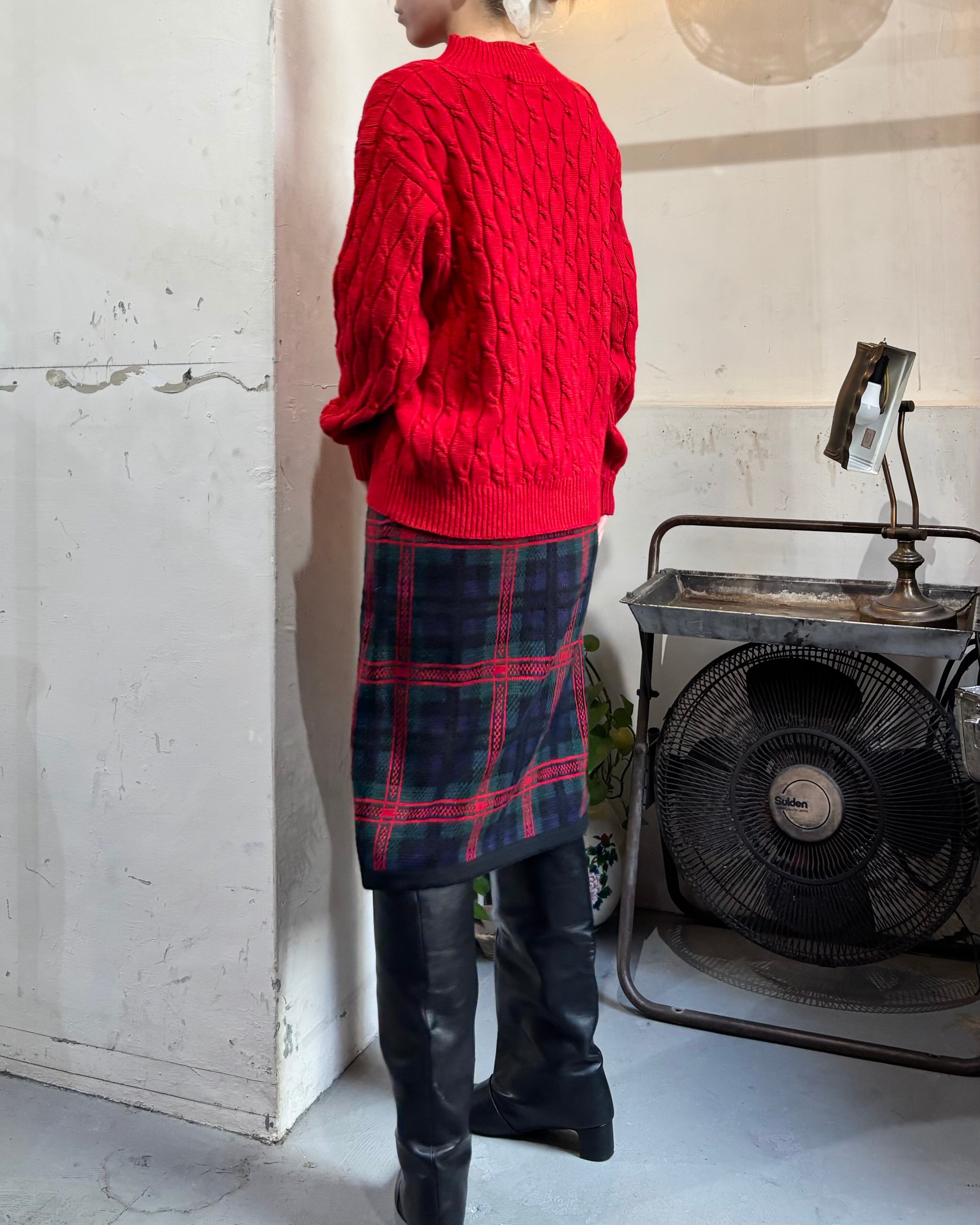 Christmas color plaid pattern acrylic knit skirt / 古着 ヴィンテージ レディース クリスマス チェック柄 ニットスカート 膝下丈