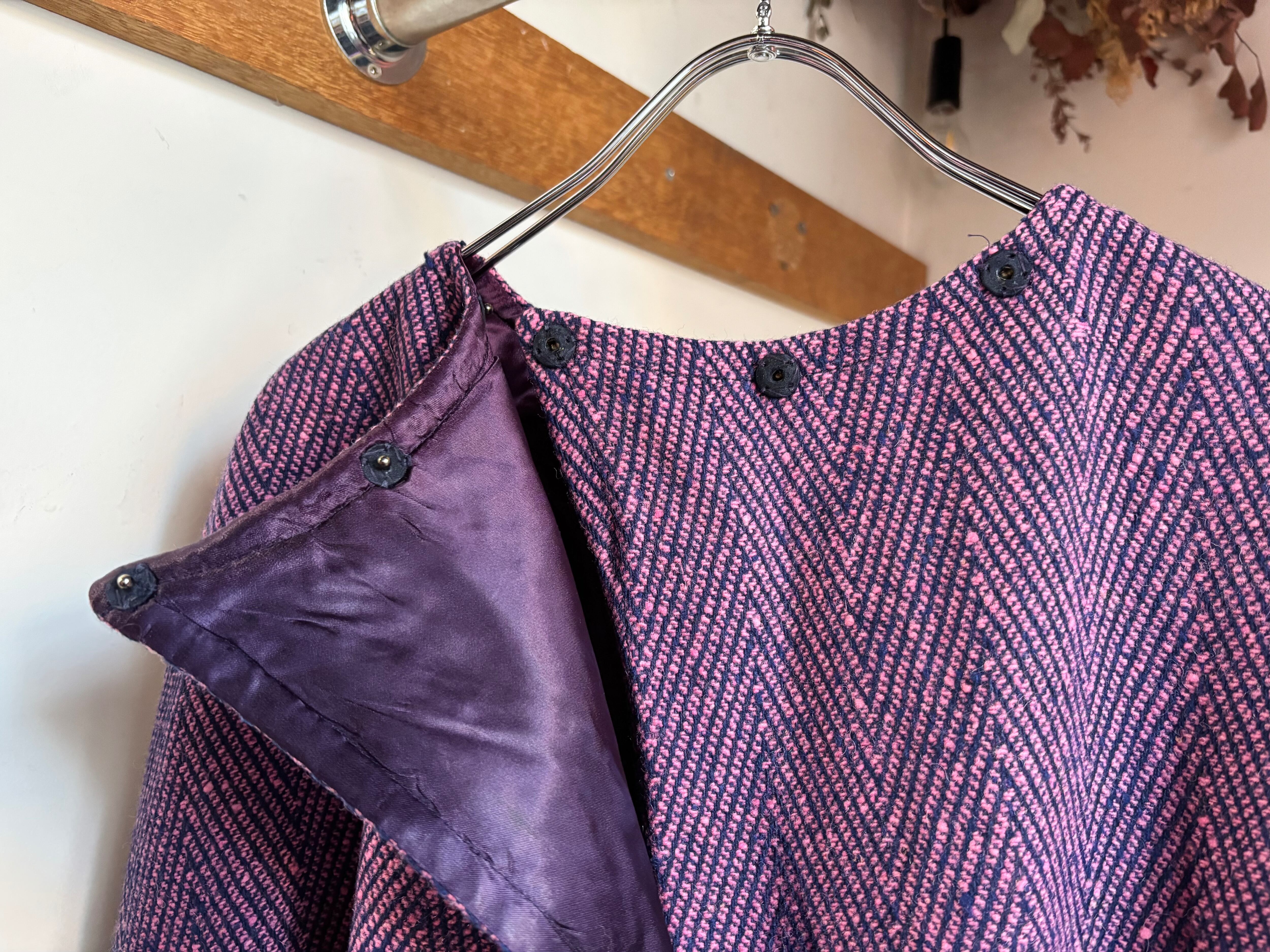 Vintage pink×blue nep wool cape coat / 古着 ヴィンテージ レディース ケープ ポンチョ コート ピンク 青 ウールネップ