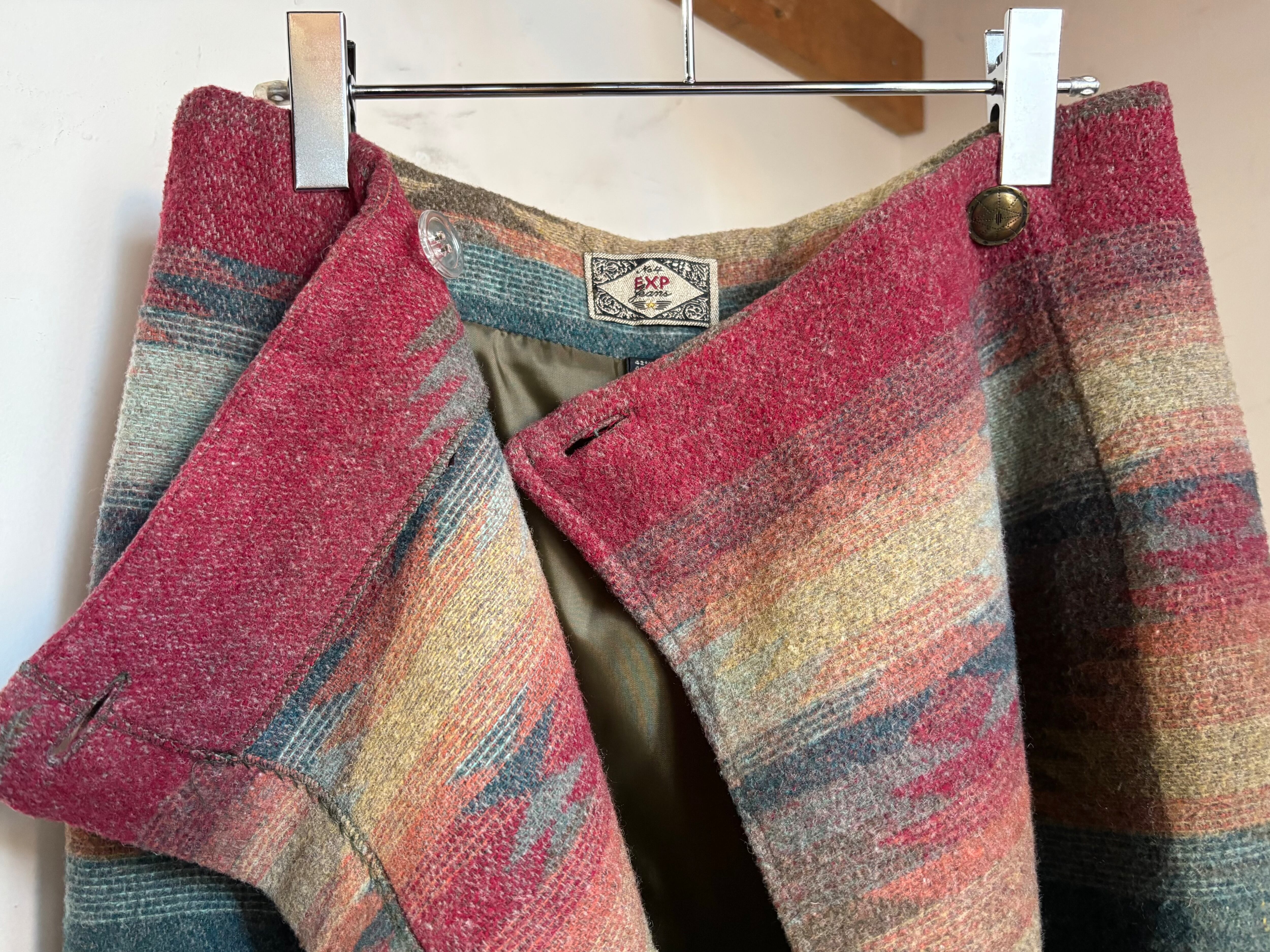 Native design wool wrap skirt made in Italy / 古着 ヴィンテージ レディース 巻きスカート ウール ネイティブ柄 イタリア製