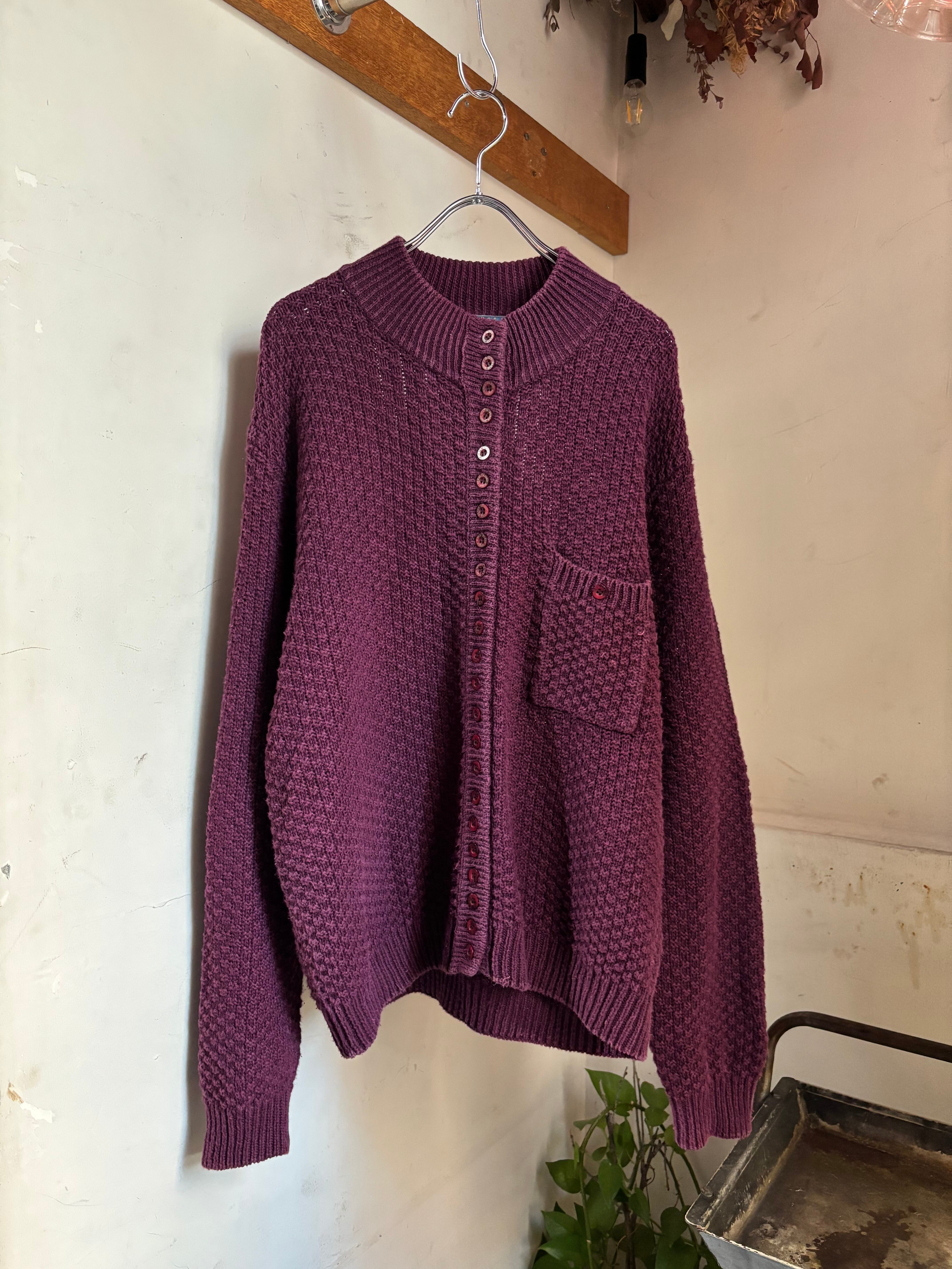 Purple ramie×cotton knit sweater / 古着 ヴィンテージ ラミーコットン 天然素材 セーター 紫