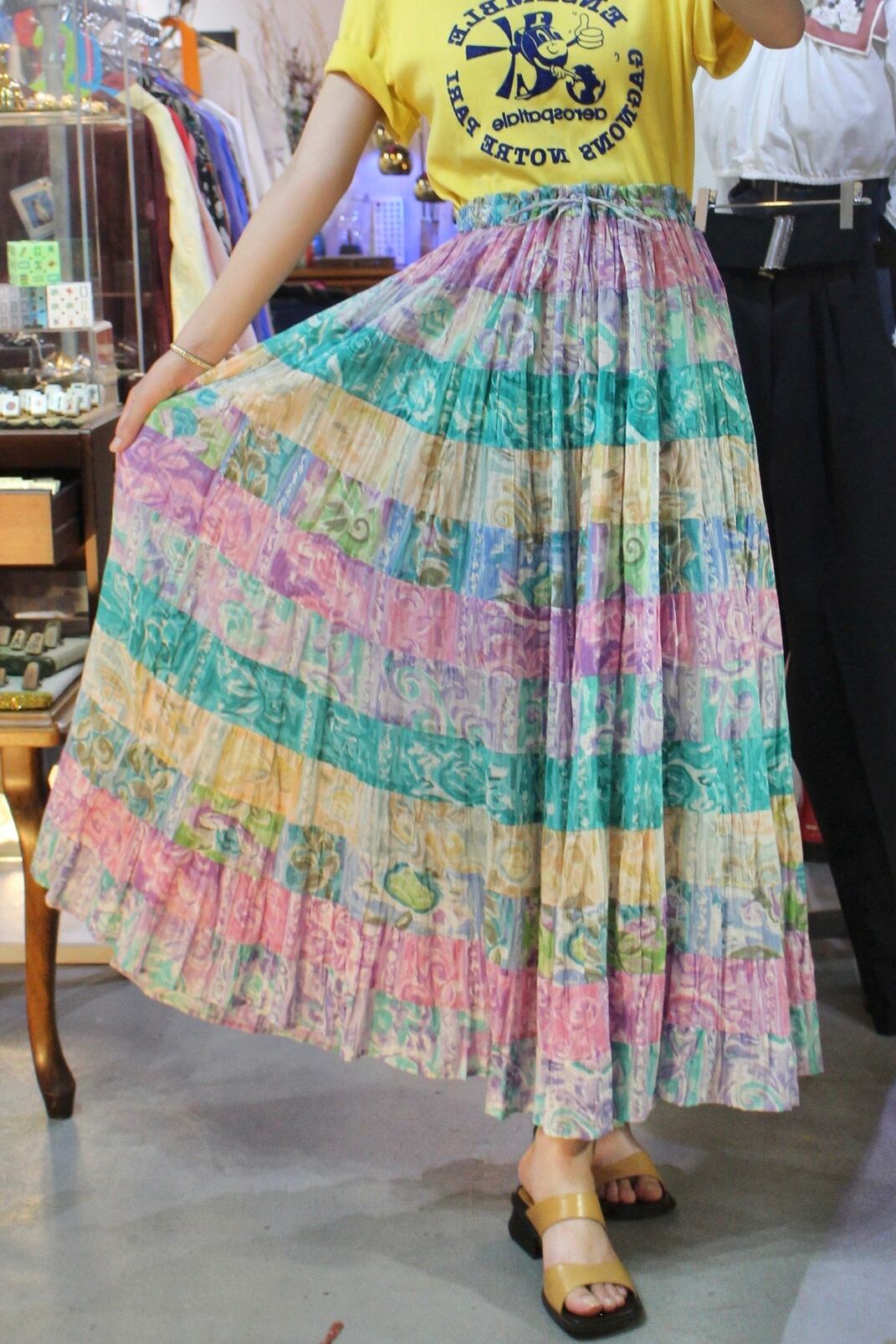 Plant print long skirt / 古着 ヴィンテージ ロングスカート パステル