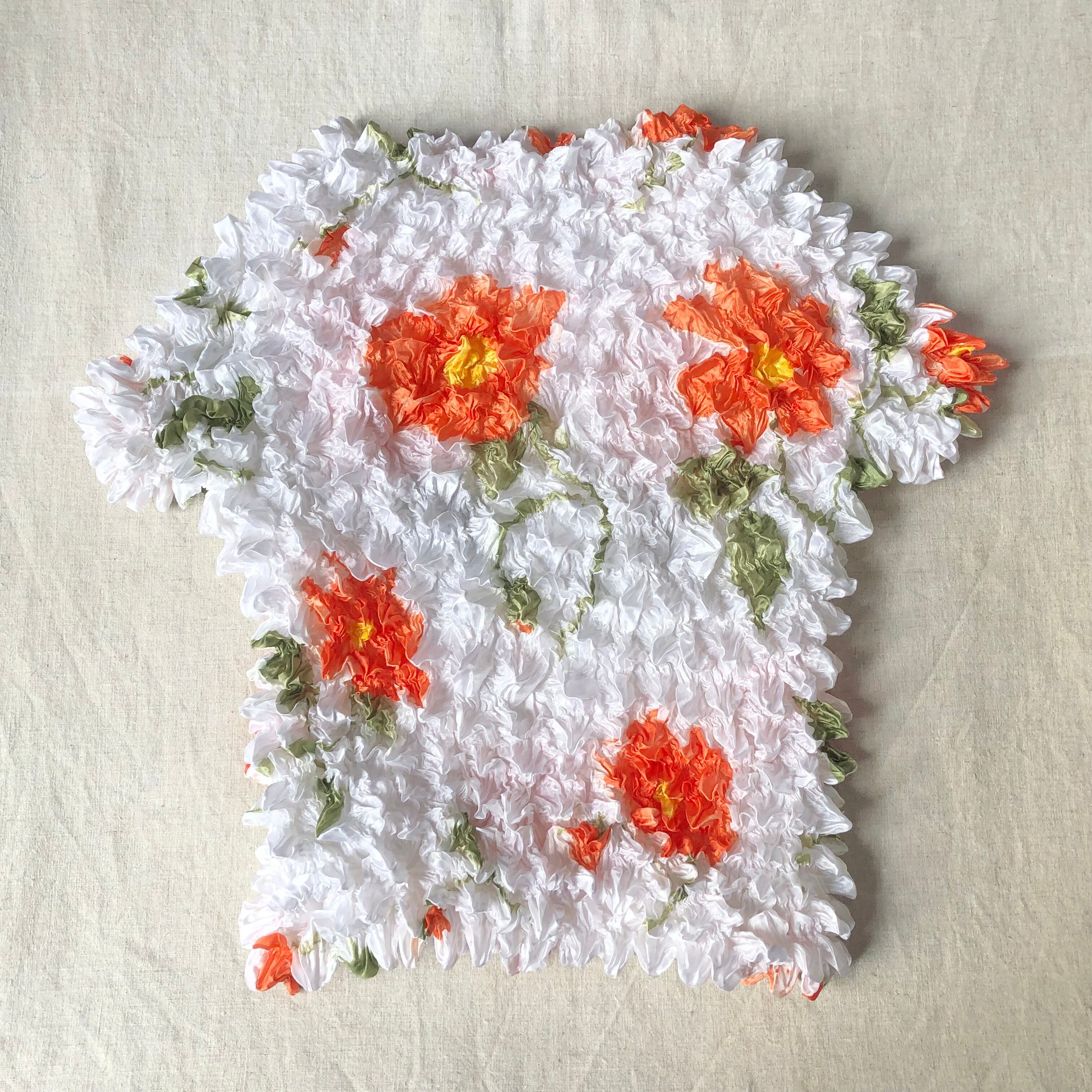 Popcorn short sleeve tops (orange flower) / 古着 ヴィンテージ ポップコーントップス 半袖 オレンジ 花柄