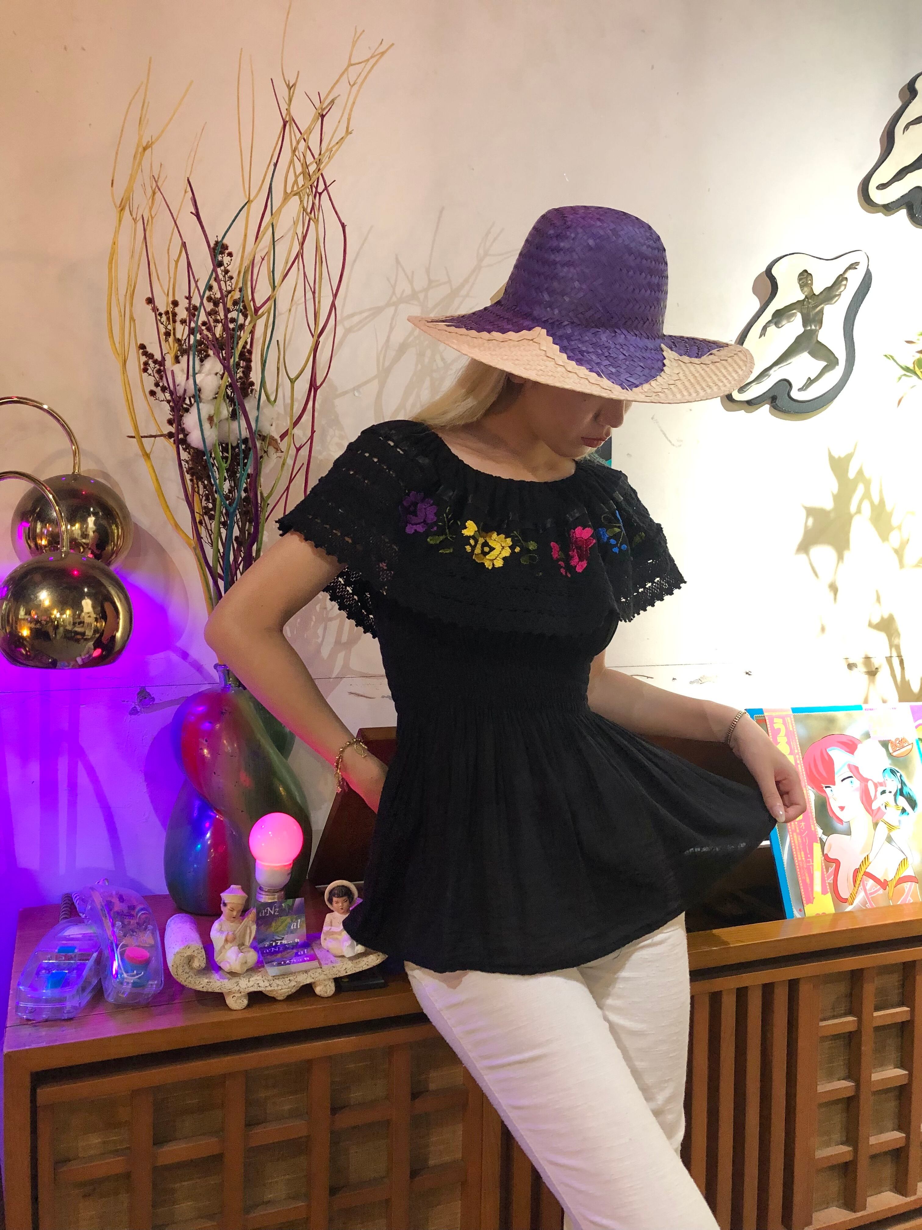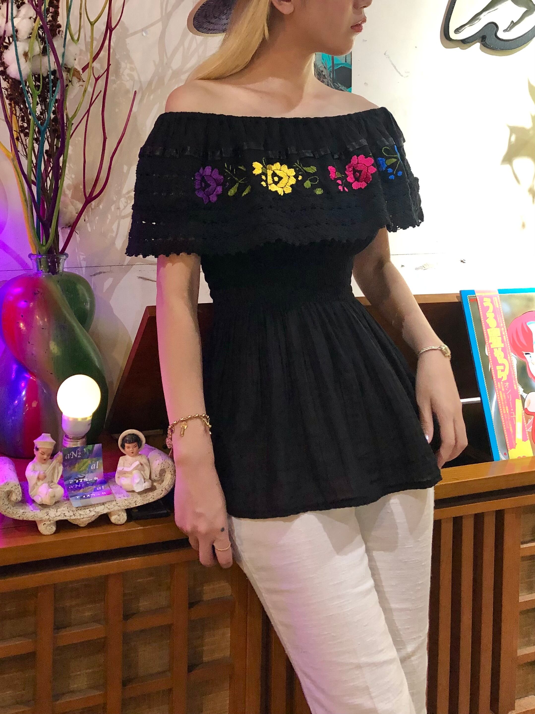 Mexican embroidered blouse / 古着 ヴィンテージ ブラウス 黒