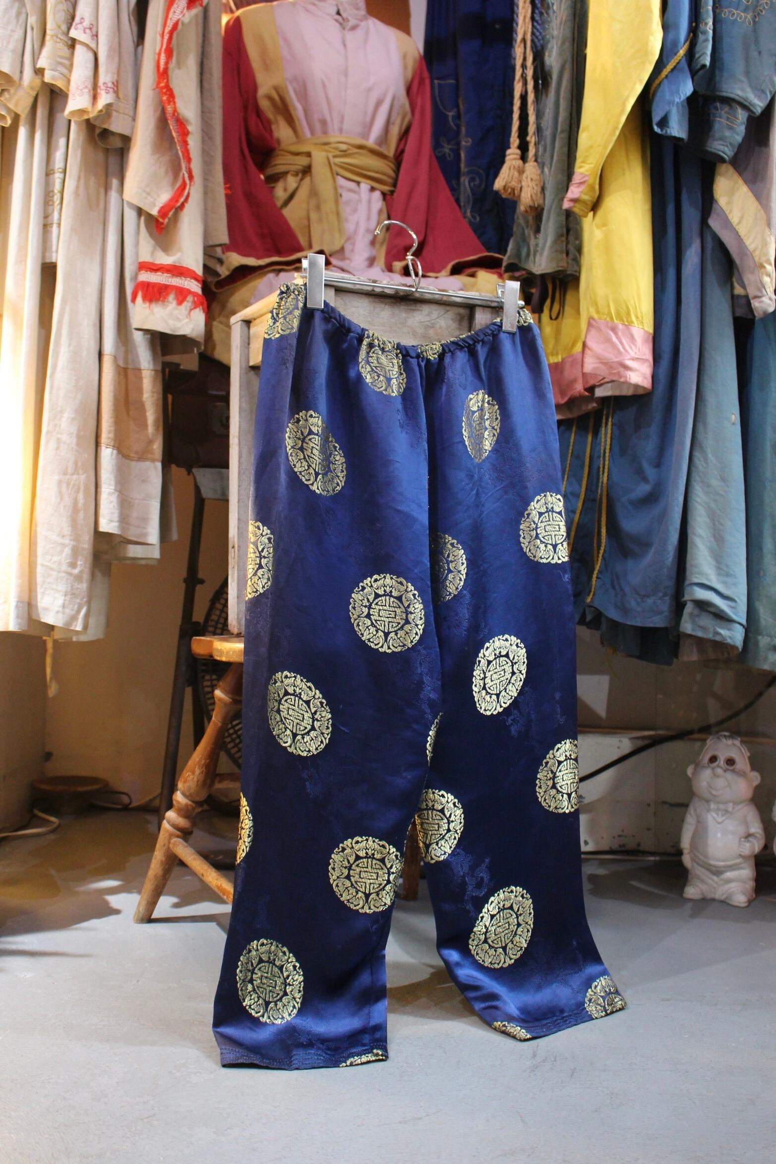 艶のあるサテン生地で、シルエットやデザインから寝巻きのパンツだったかと推測されます。