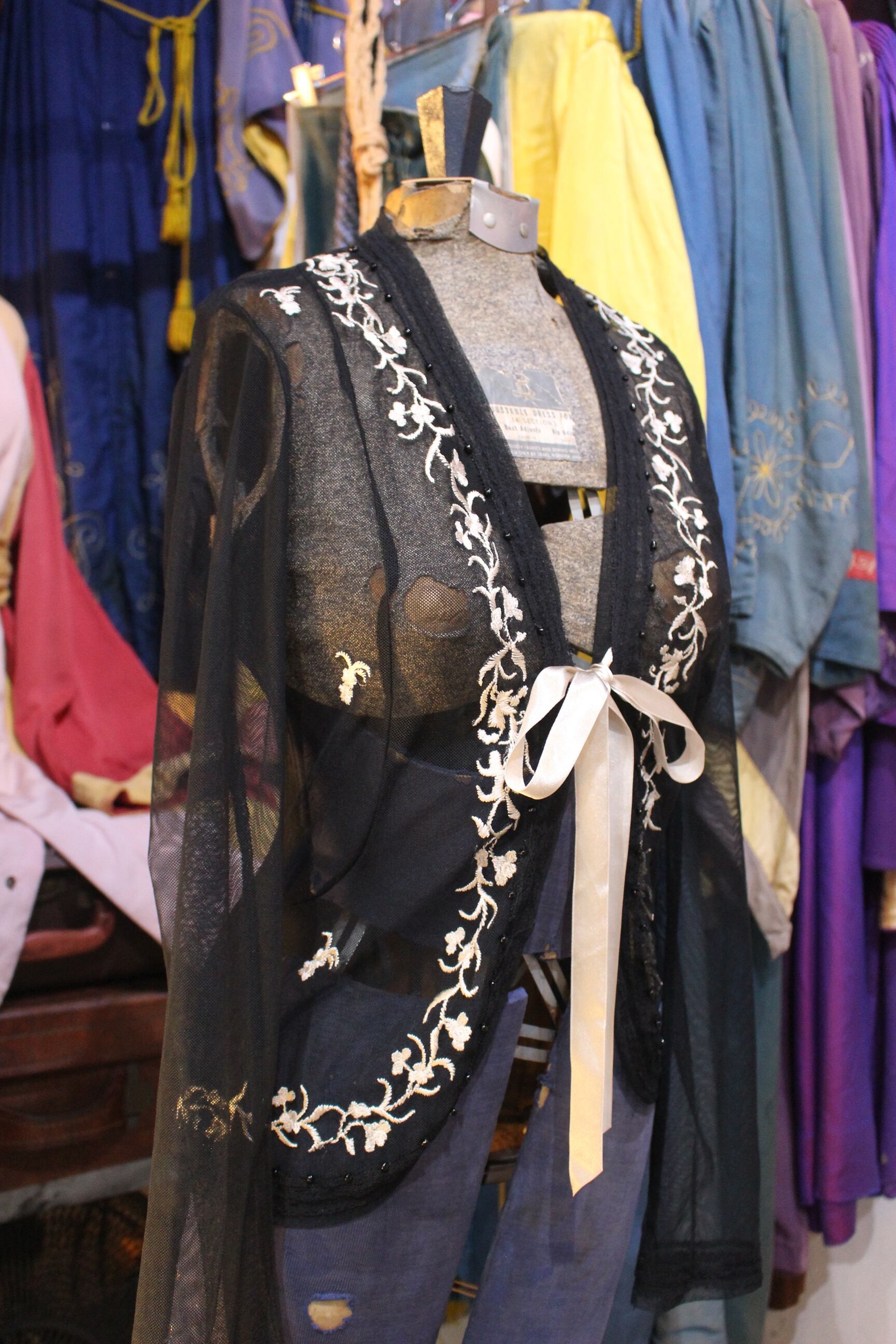 刺繍と並んで小さな黒のビーズが縫い付けられています。