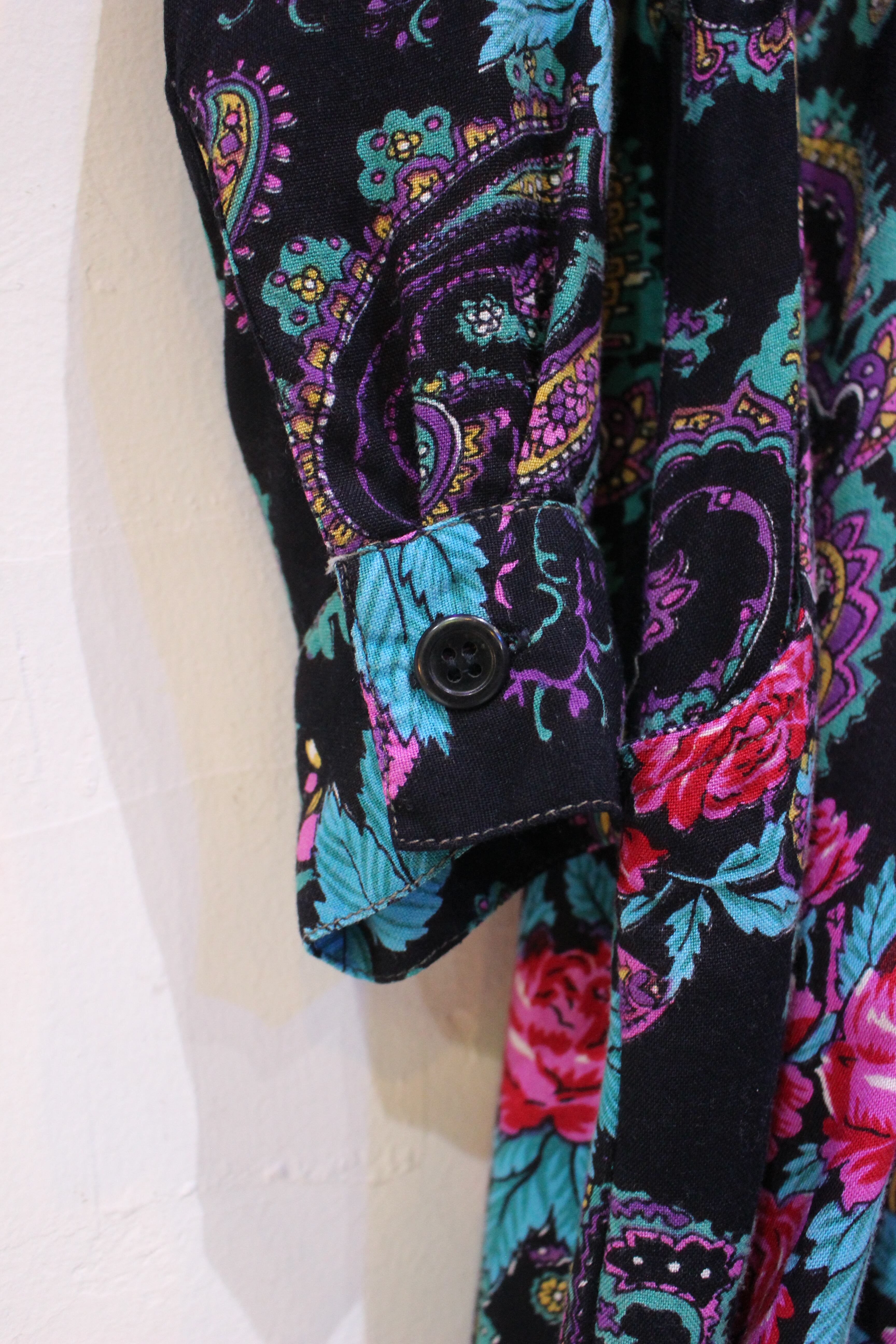 Flower paisley print jumpsuits / 古着 ヴィンテージ 花柄 ペイズリー ジャンプスーツ オールインワン