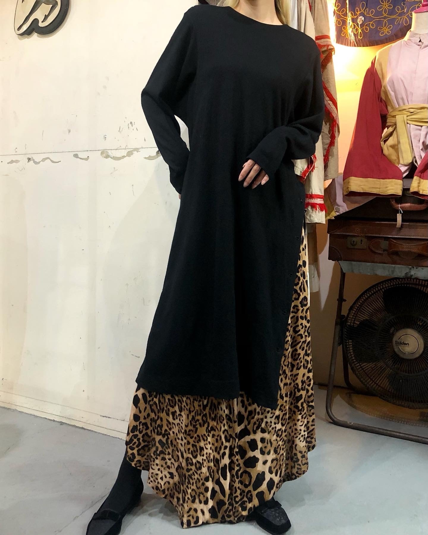 一枚でもシックで素敵なドレスですが、スリット部分を生かしてレイヤードスタイルにもぴったり。