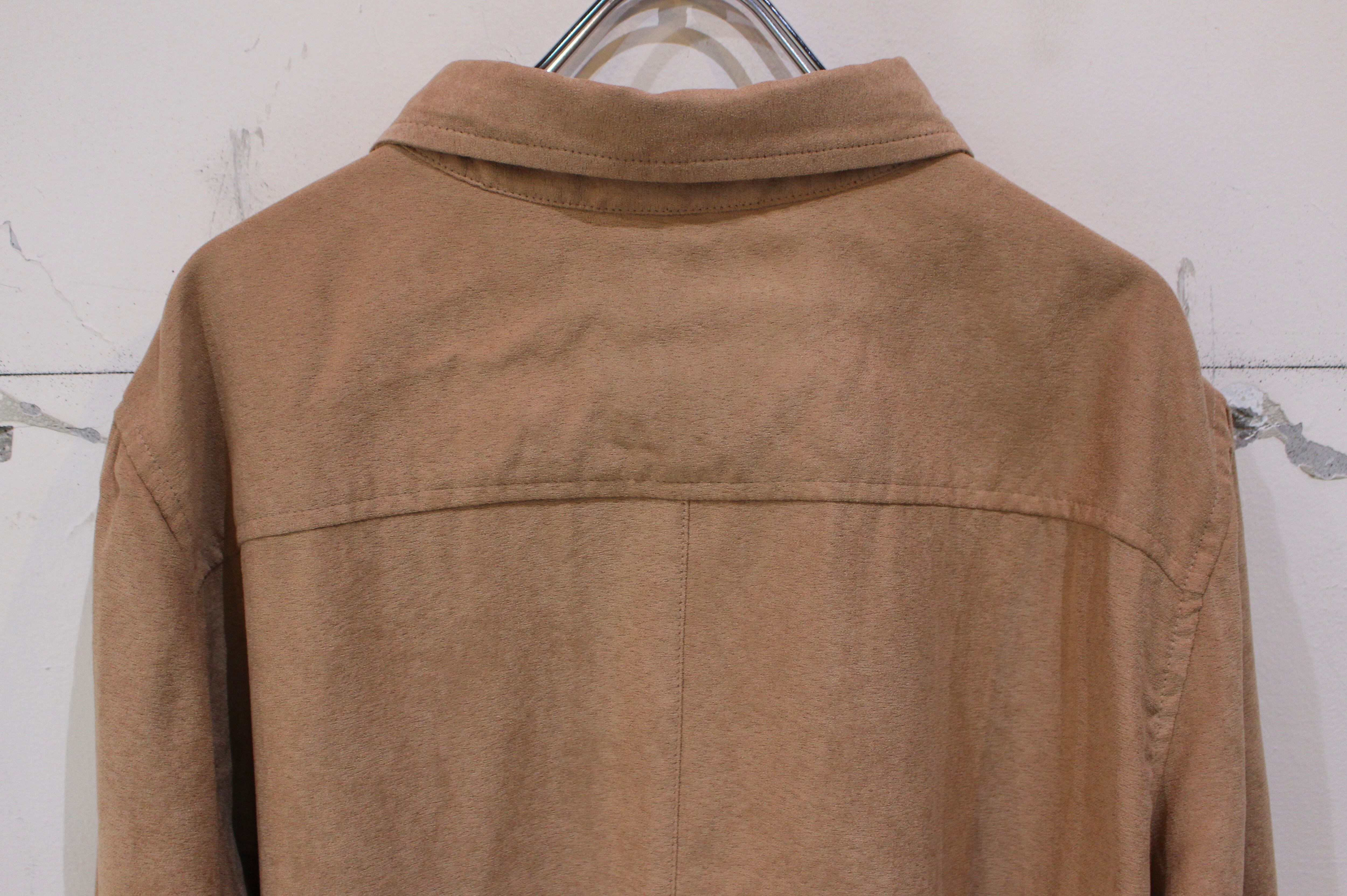 フェイクスエードのシャツの両胸にニットポケットを縫い付けたオリジナルリメイクアイテム。