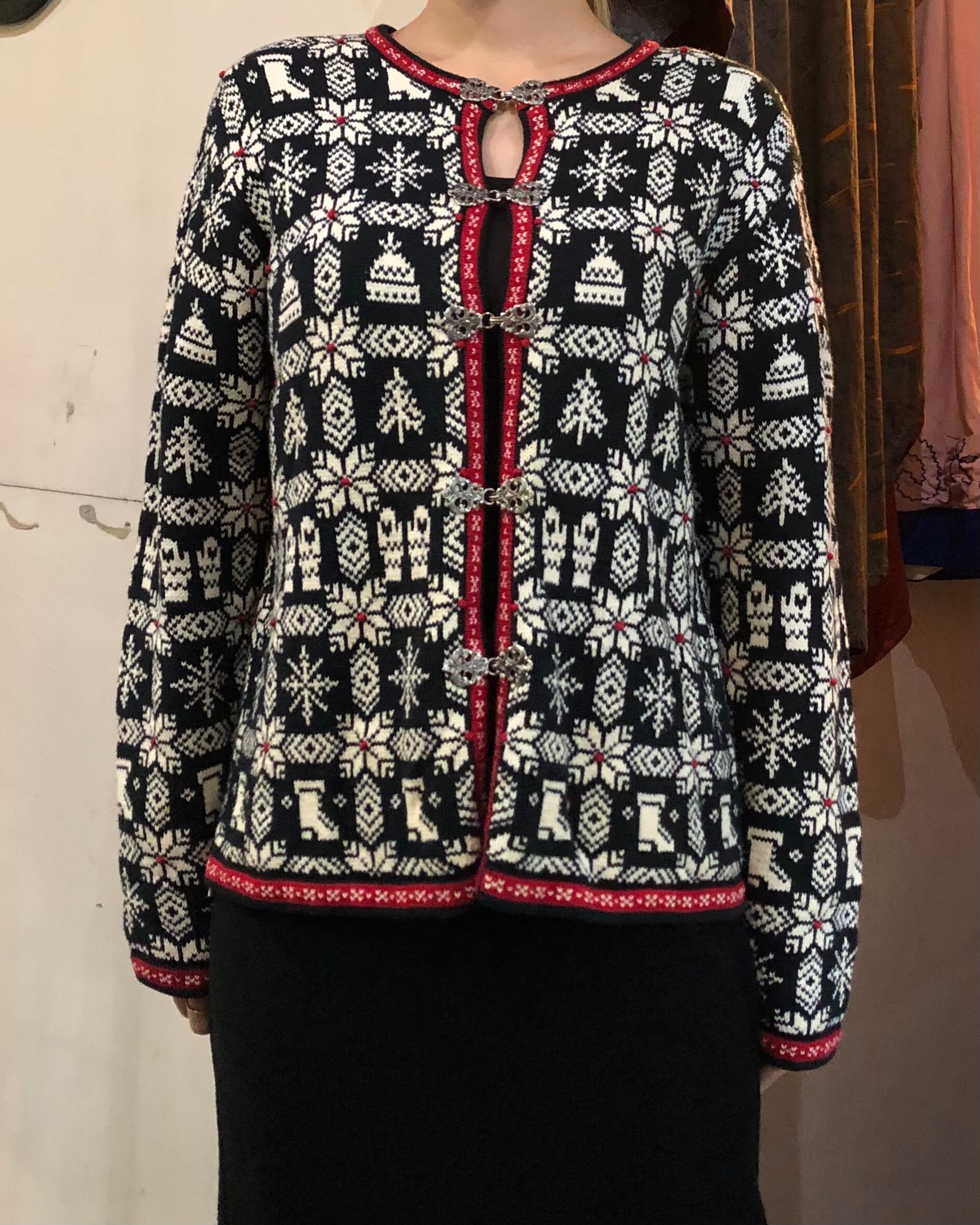 Christmas design cardigan / 古着 ビンテージ Xmas クリスマス コットンニット カーディガン