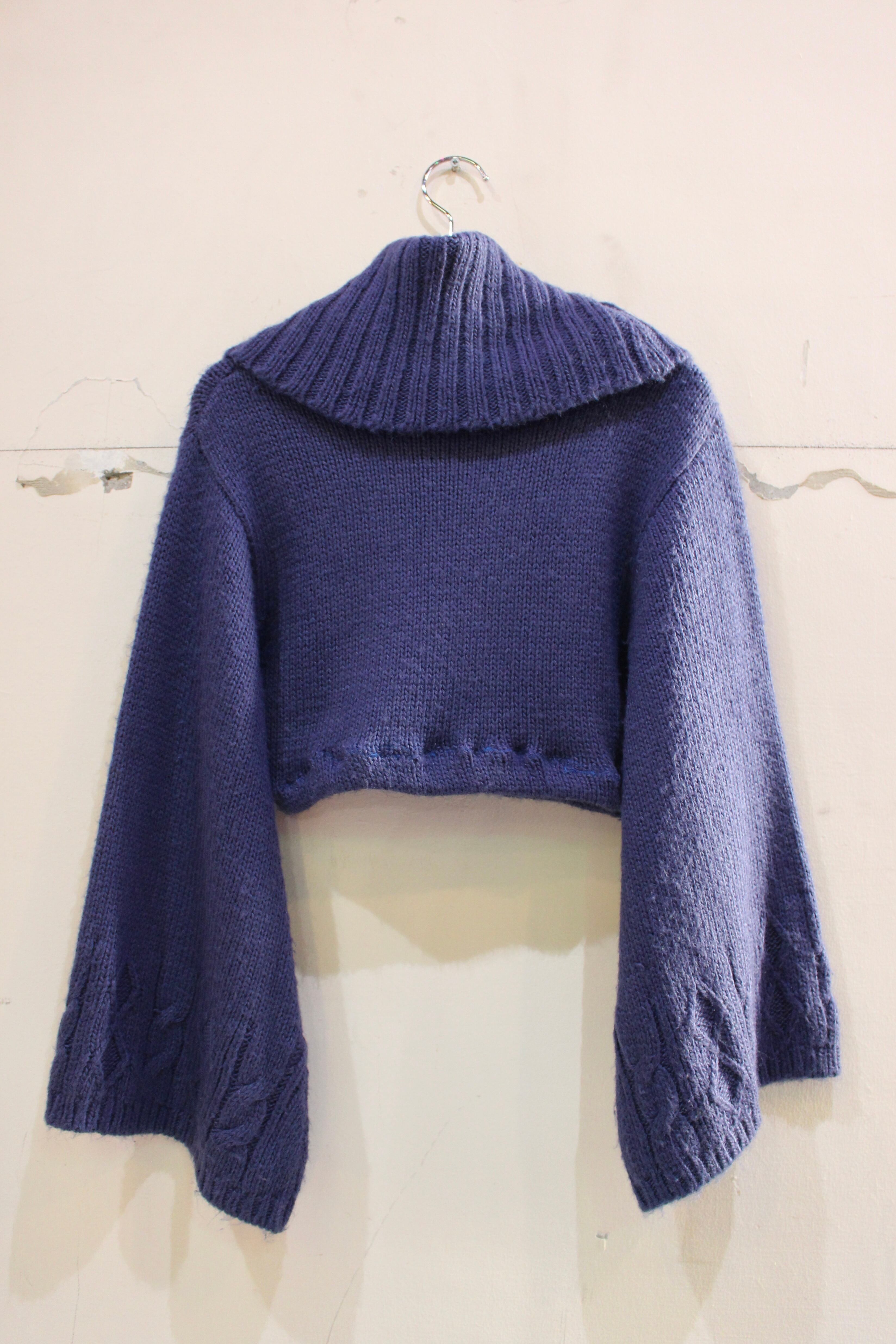 Navy sweater remake short length / 古着 ヴィンテージ ショート丈セーター
