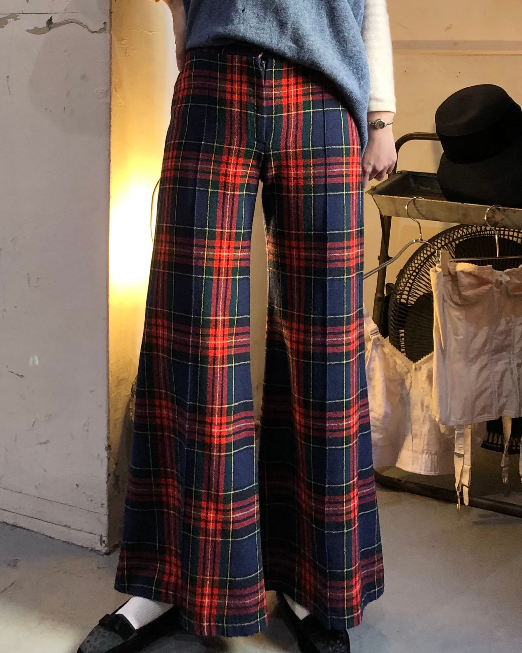 70's~ wool plaid flare pants / 古着 ヴィンテージ フレアパンツ チェック柄 1970s