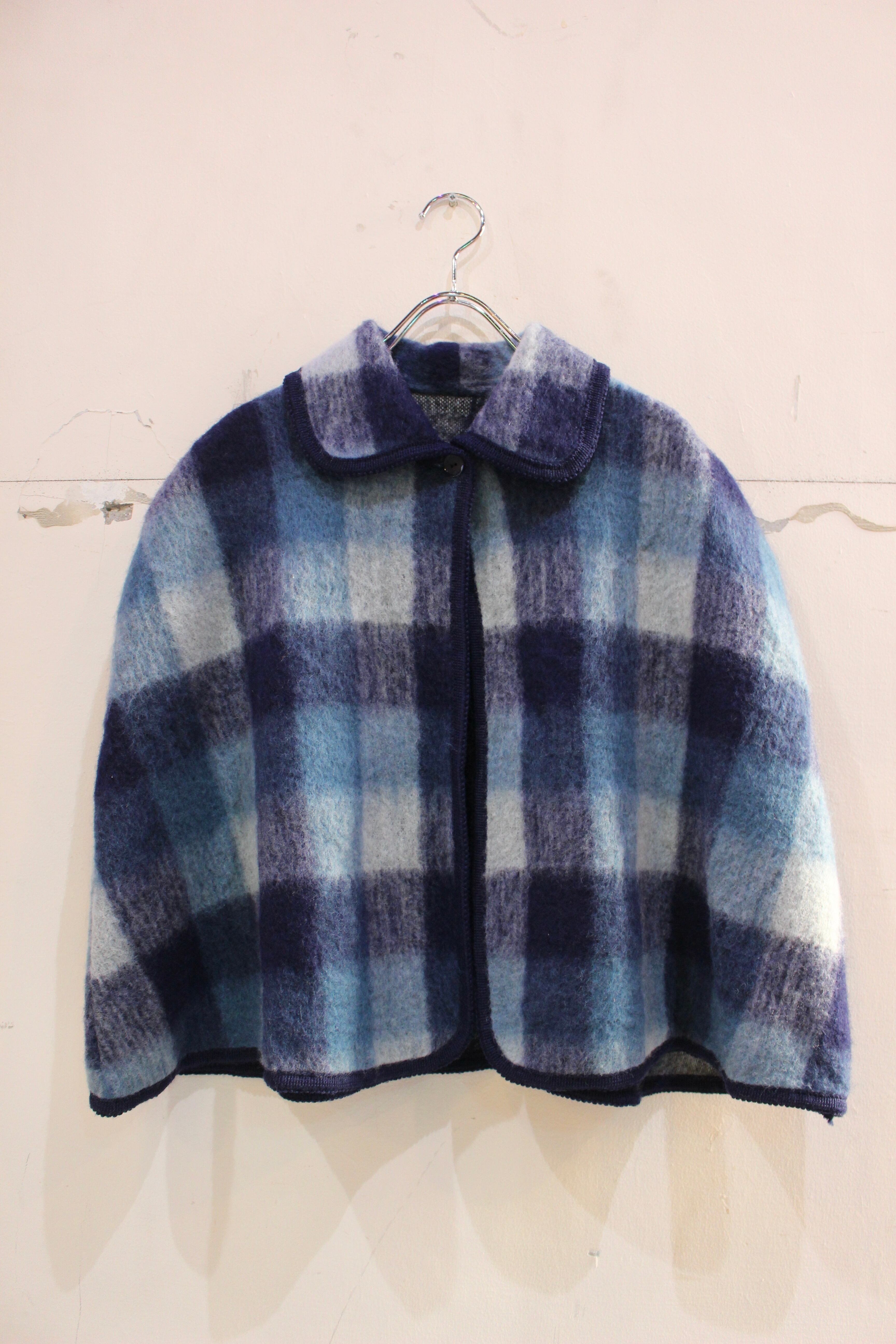 Vintage navy bloc check pattern cape / 古着 ヴィンテージ ケープ チェック柄
